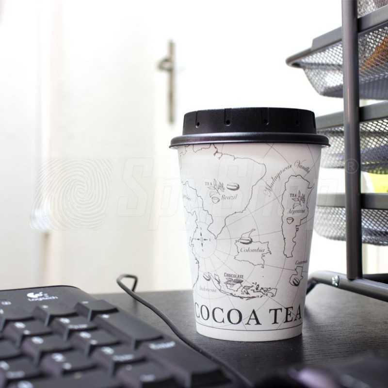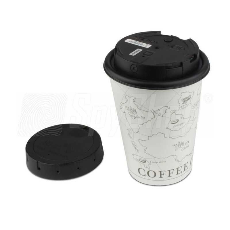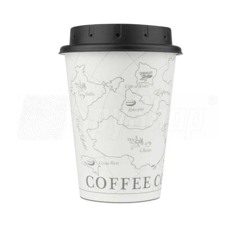 PV-CC10W - это скрытая WiFi-камера с миниатюрным объективом, спрятанным в крышке кофейной чашки, которую можно приобрести на заправочных станциях, в кафе и в точках «To Go». Матрица CMOS записывает видео изображение в формате Full HD, которое можно сохранять на съемных картах памяти объемом до 32 ГБ.