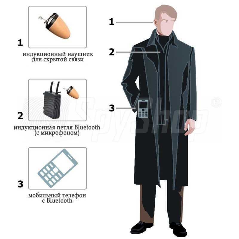Мобильный телефон пользователя подключается к индукционной петле БТ-3, надетой на шею. Индукционная петля BT-3 использует электромагнитную индукцию для передачи звука с телефона на микронаушник TopPro. Чувствительный микрофон, размещенный на петле, позволяет вести незаметный разговор.