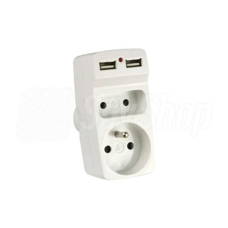 Разветвитель изготовлен из прочного пластика. Имеет две розетки и два USB-входа, благодаря чему можно производить зарядку мобильных устройств.